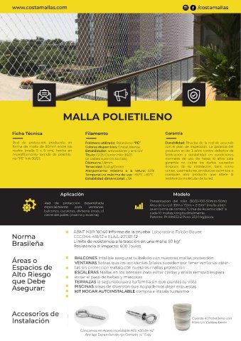 Red de protección producida en Polímero utilizado: Polietileno “PE” Durabilidad: Prueba de la red de acuerdo